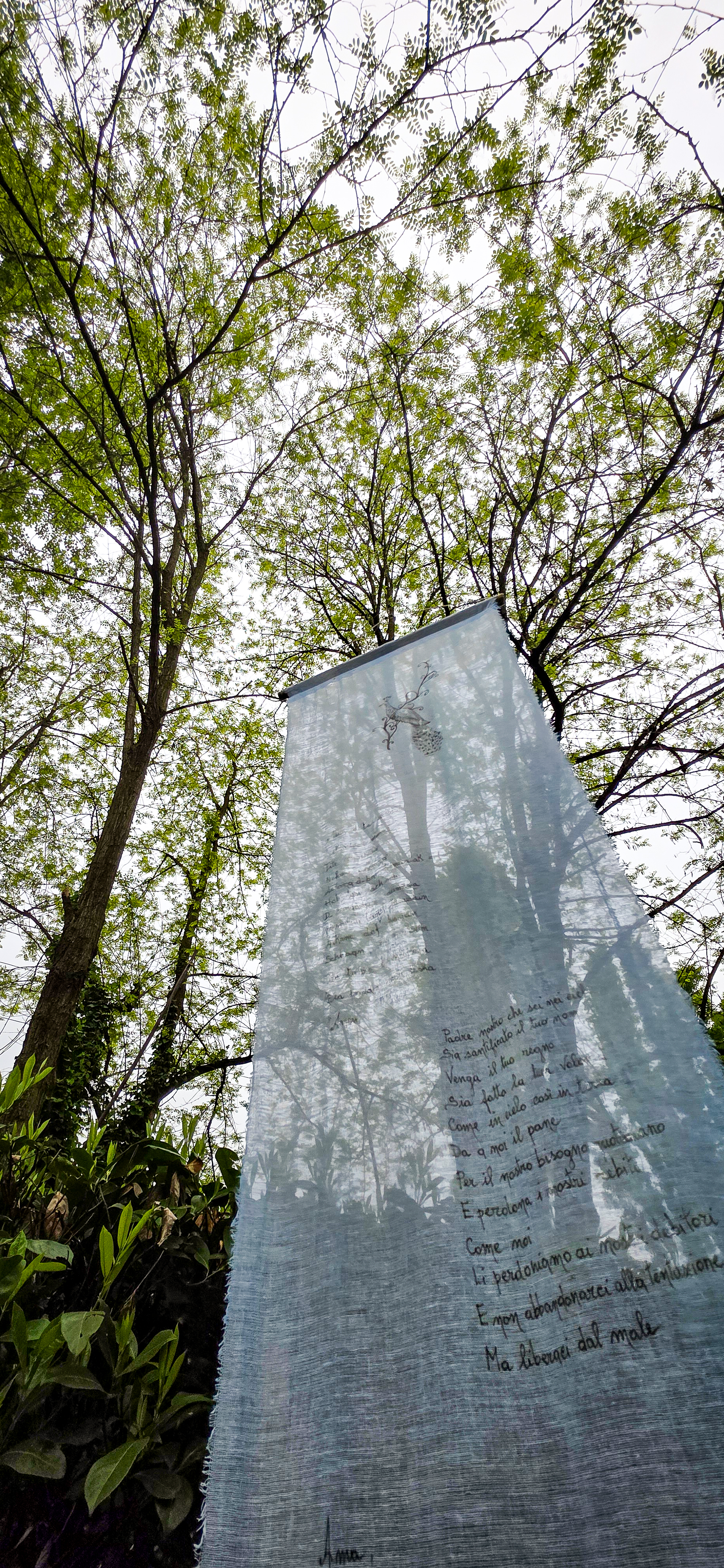 L’iniziativa avrà luogo nel Giardino delle Stanze Sonore, creato da Patrizia Merendi. Dodici bandiere alte otto metri affidate al vento accoglieranno le nuove preghiere, trascritte a mano durante questo anno di attività, provenienti da diverse tradizioni religiose.